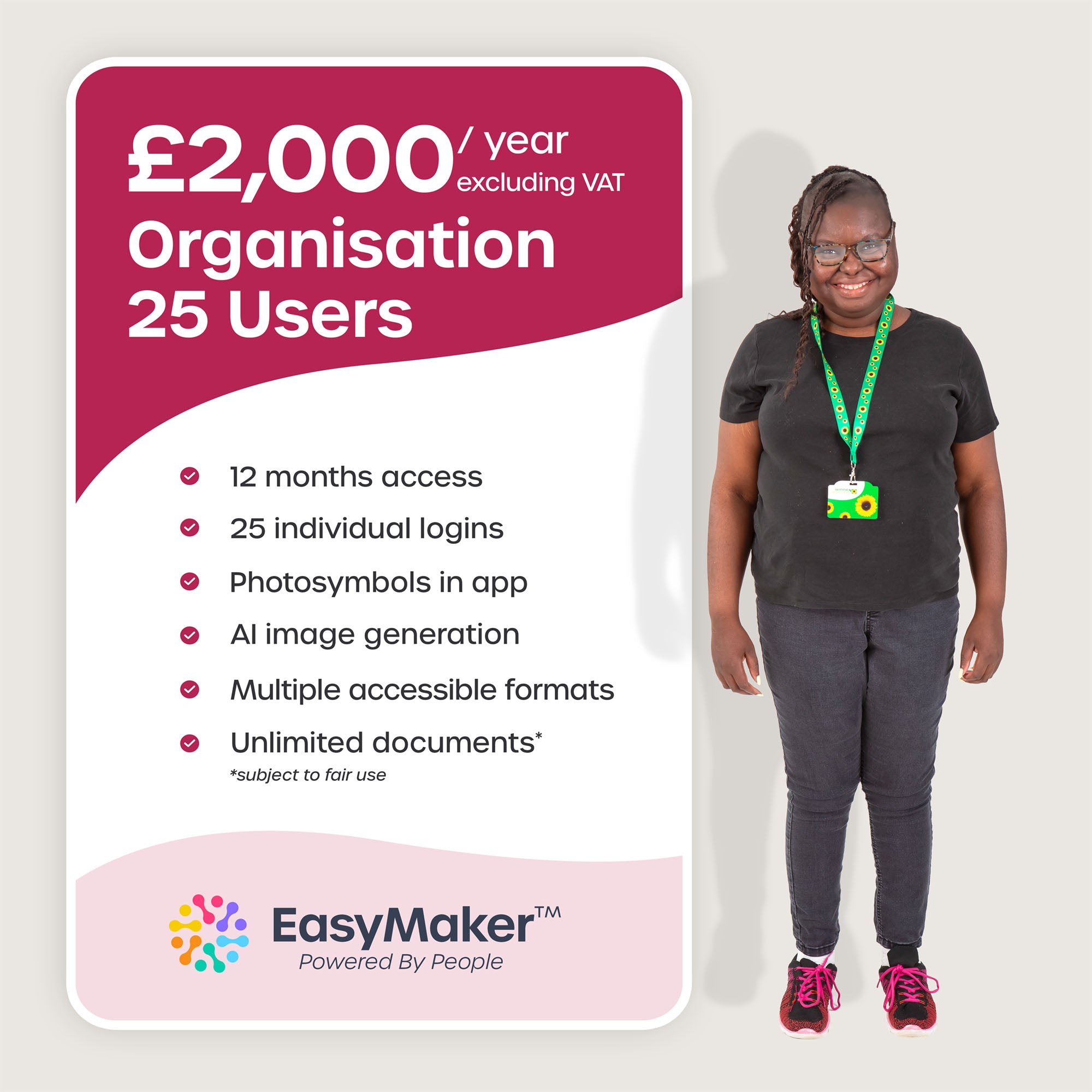 Create professional Easy Read documents with AI assistance — for larger organisations with multiple teams creating accessible communications.